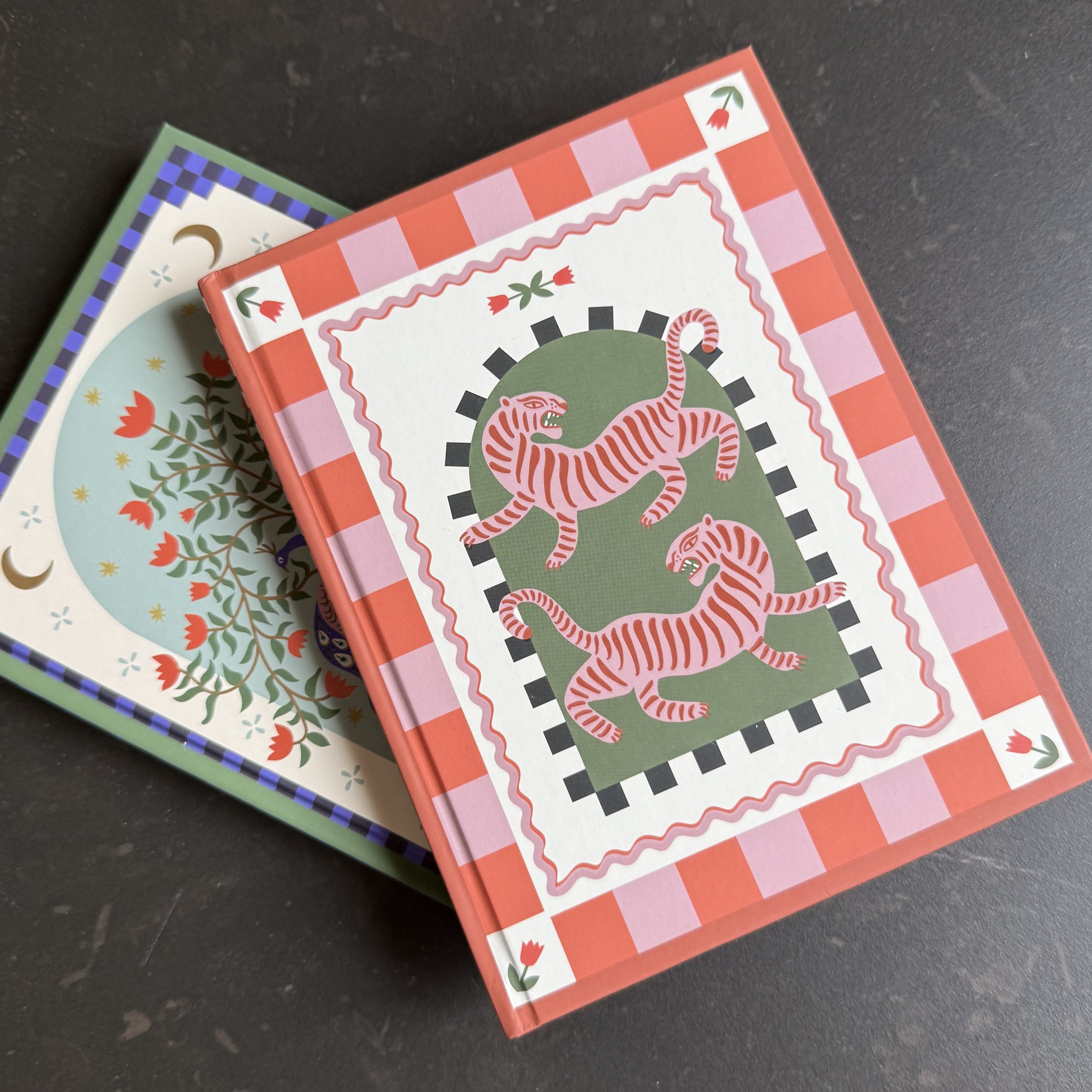 Libreta con original ilustración. Su papel de 80 gr., impreso con tintas de soja y libre de ácido, ofrece una experiencia de escritura respetuosa con el medio ambiente. Además, su encuadernación cosida a mano permite que el cuaderno se abra completamente, mientras la cinta marcapáginas ayuda a mantenerte organizado.