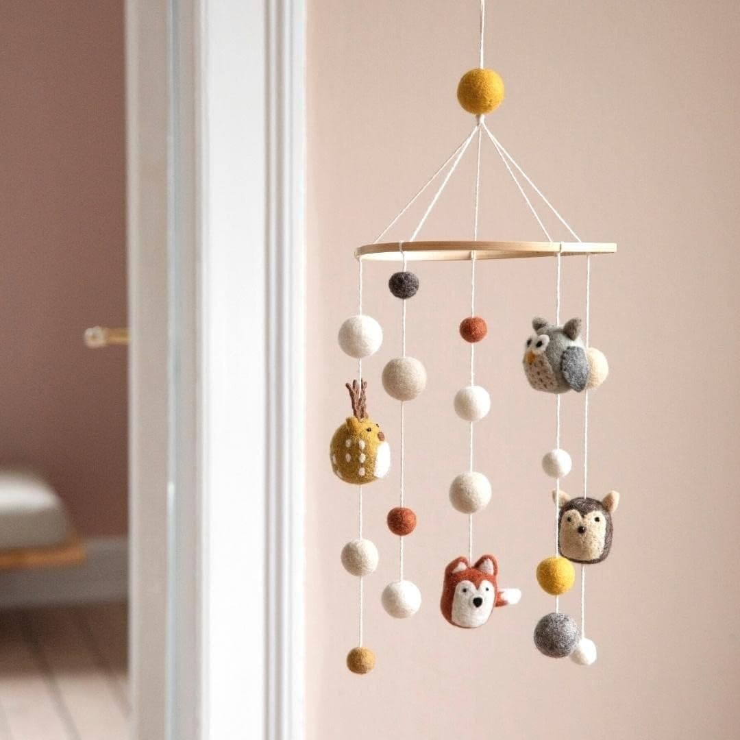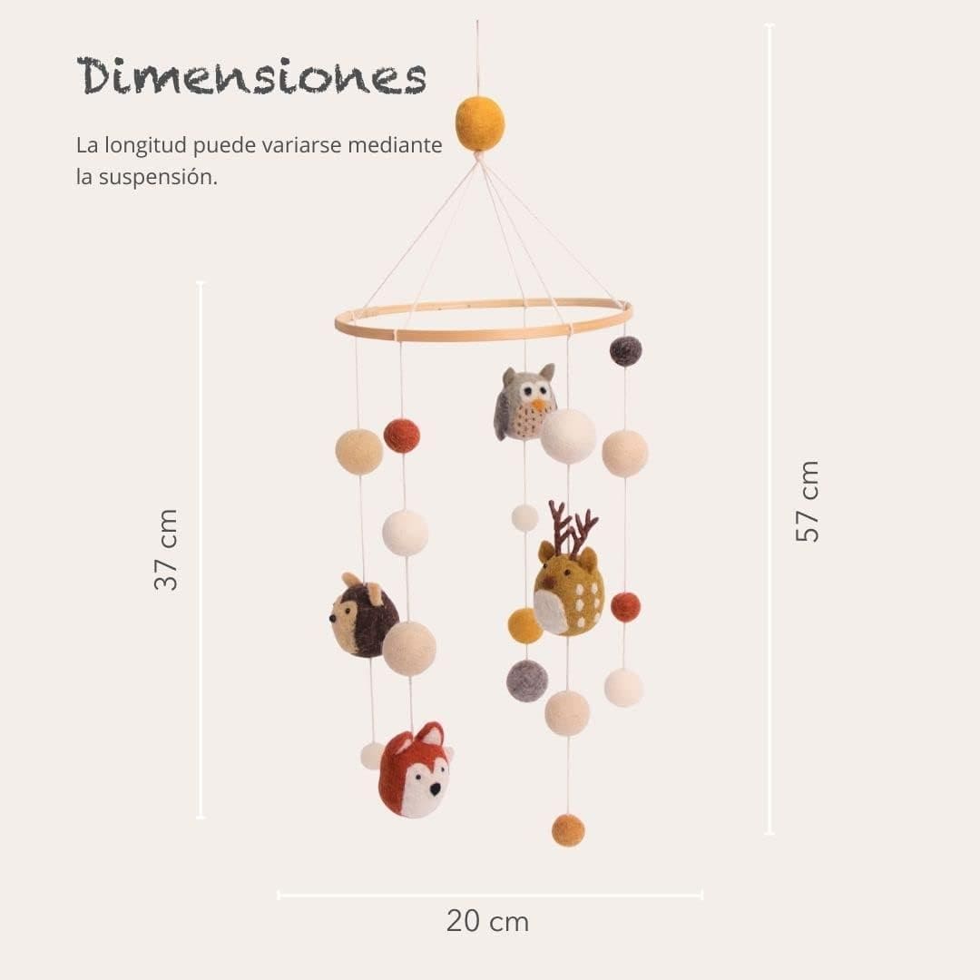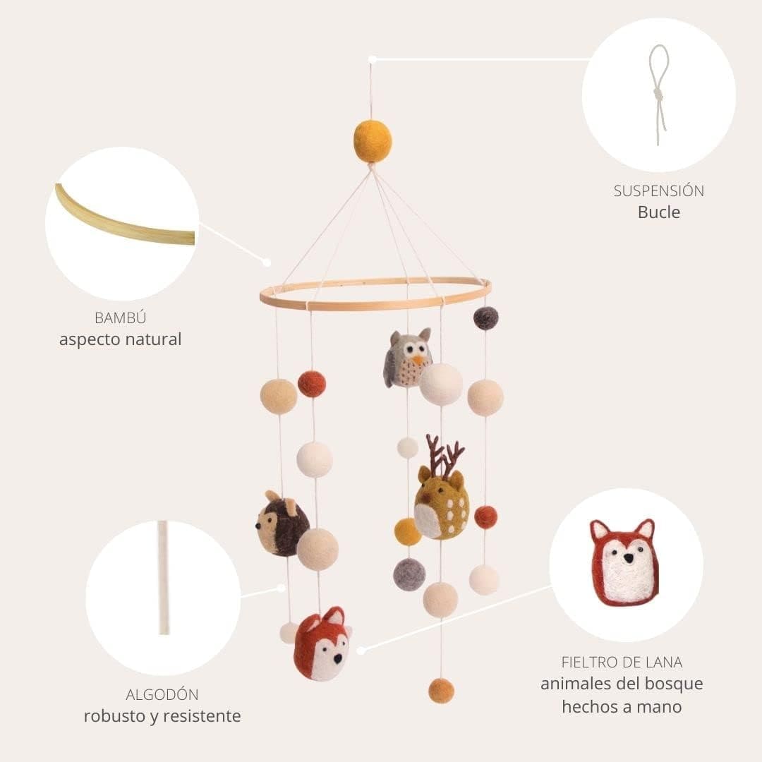 El bosque cobra vida. Este móvil de animales del bosque aporta un toque de magia natural a cualquier habitación infantil, lleno de encantadores detalles hechos a mano.