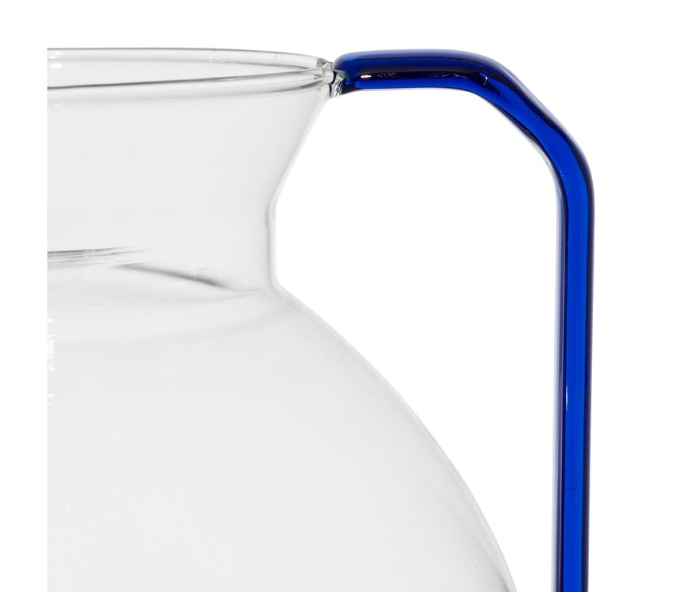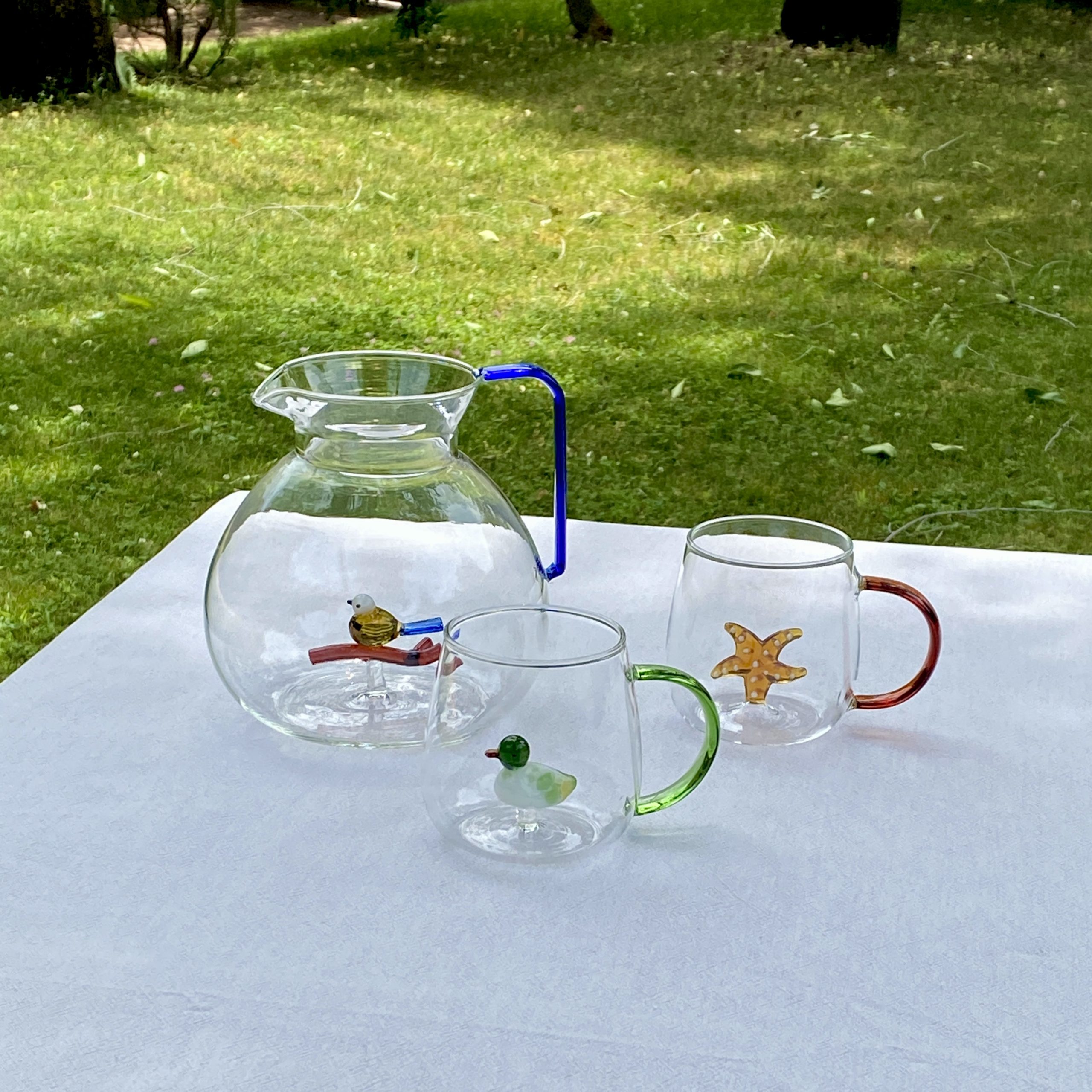 Jarra de cristal con un pájaro en su interior. Asa azul océano. 1,7 L.. CÔTÉ TABLE